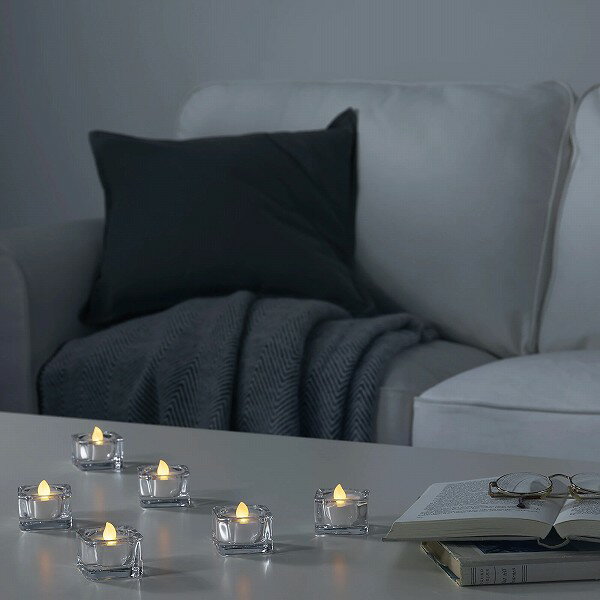 ティーライト1つにつき、リチウム電池(CR2032 3V)1個を使用します LATTBOJ/プラットボイ リチウム電池(CR2032 3V)を使うと70時間点灯します。