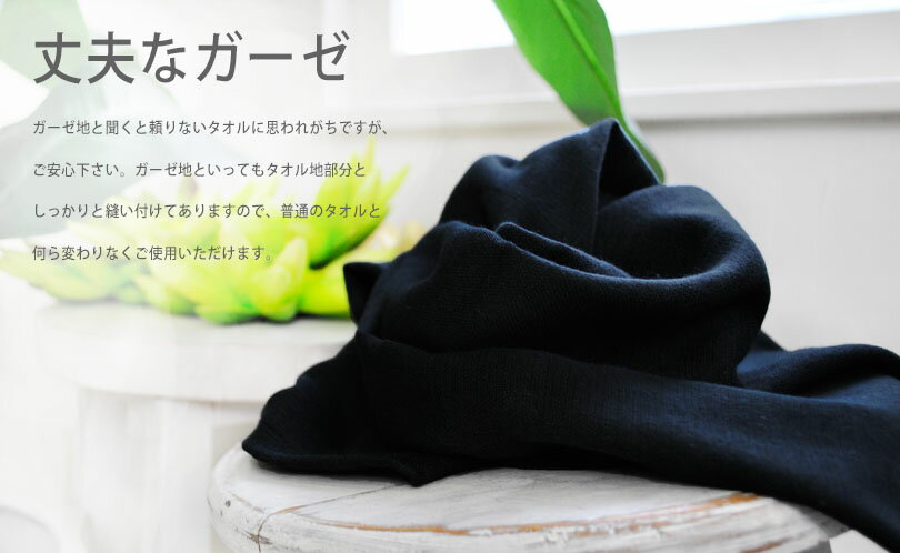 サイズ 約34×98cm 重さ 1枚あたり約78g 素材 綿100% 原産国 日本 人気のブラックカラーフェイスタオル! なかなか見ない、 ガーゼ生地で出来た 黒色のフェイスタオルです。