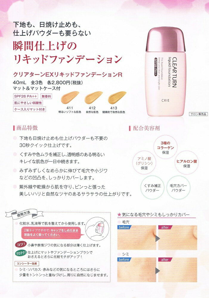 クリエ クリアターンEXリキッドファンデーションR 40ml 全3色