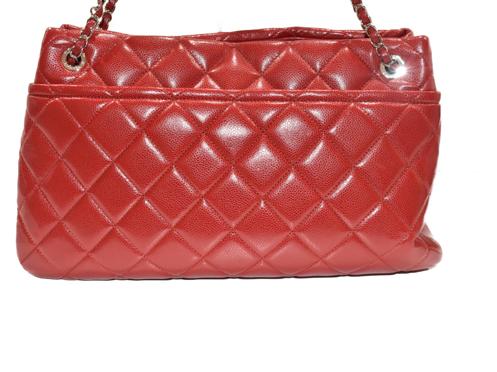 ブランド CHANEL 商品名 チェーントートバッグ 型番 A67292 シリアル 16590579 サイズ(約) 約:縦23cm×横幅:42cm×マチ:8.5cm カラー 赤 素材 キャビアスキン 仕様 マグネット開閉/前面ポケット×1/背面ポケット×1/内ポケット×3 参考価格 \401,500 商品ランク 中古AB(すり傷や小傷があり、若干の使用感を感じるが、中古品としては比較的きれいな商品。