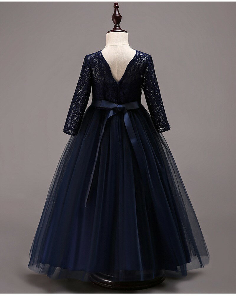 送料無料子供ドレス ワンピース マキシ丈 レース 刺繍 チュールワンピース ドレス ピアノ発表会 長袖 ドレス 女の子 子ども 花嫁 結婚式 キッズドレス 子供服 フォーマル
